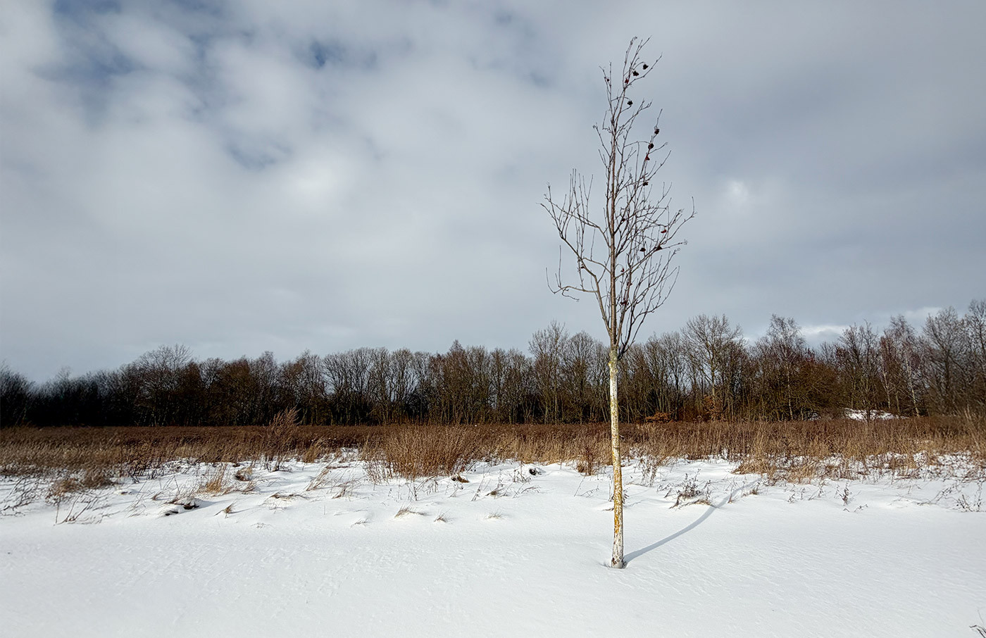 Ein Spaziergang durch die verschneite Landschaft hat etwas Beruhigendes. Am Fuße des Erzgebirges liegt im Winter oft noch Schnee, der alles verändert: Farben ziehen sich zurück, Konturen werden weicher, Details verschwinden unter einer gleichmäßigen Decke. Die Landschaft wirkt plötzlich klarer, fast grafisch. Übrig bleiben Flächen, Linien, Kontraste. Das Große Ganze.