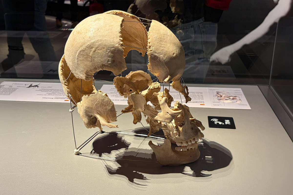 Vor Ort geht es ebenso angenehm weiter: Regenschirme und Taschen verschwinden im Schließfach, am Kassenbereich werden wir freundlich empfangen. Die Erwachsenen erhalten Audioguides, die Kinder ein Rätselheft. Eine durchdachte Lösung. Denn seien wir ehrlich: Die Aufmerksamkeitsspanne ist, unabhängig vom Alter, begrenzt. Spätestens nach der fünften plastinierten Figur ertappt man sich selbst dabei, etwas schneller am nächsten Exponat vorbeizugehen.