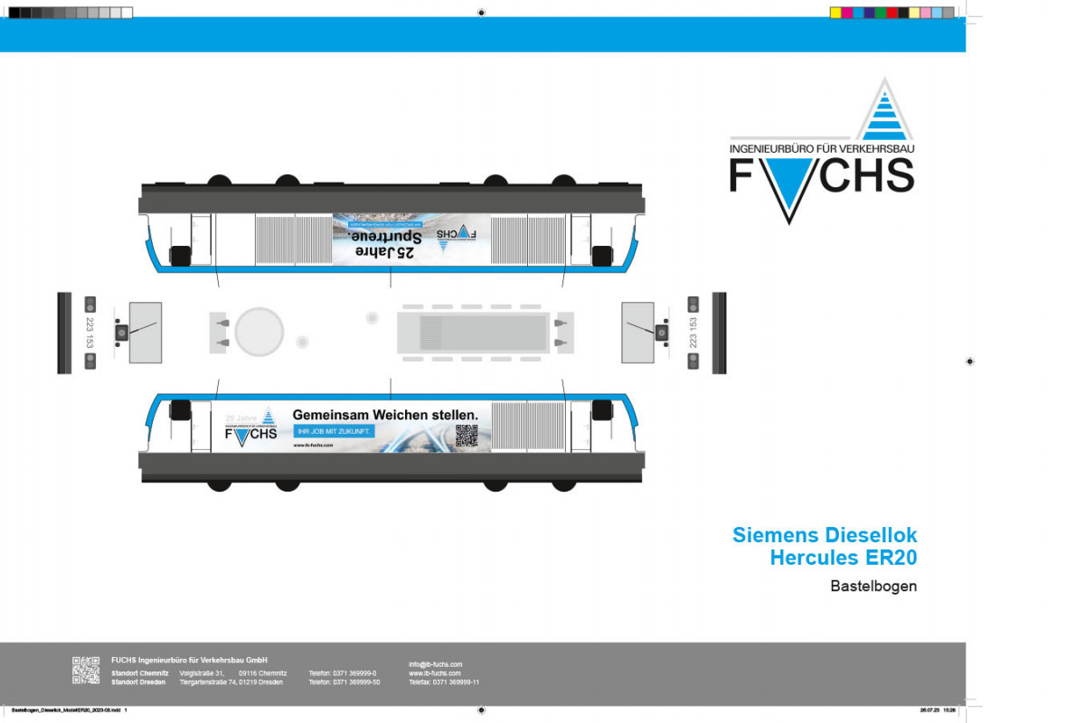Bastelbogen einer Siemens Diesellok Herkules ER20, entsprechend H0-Größe, im Maßstab 1:87
