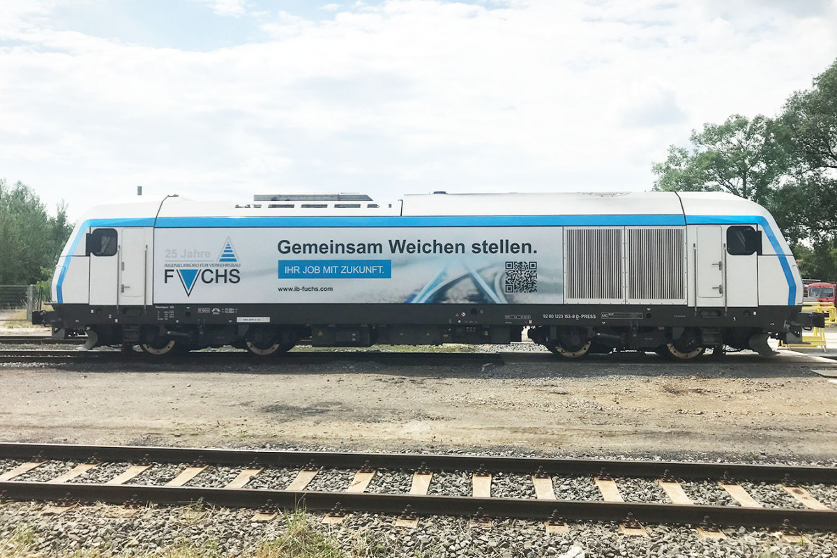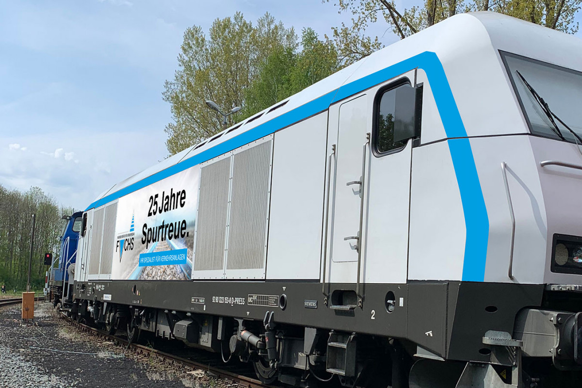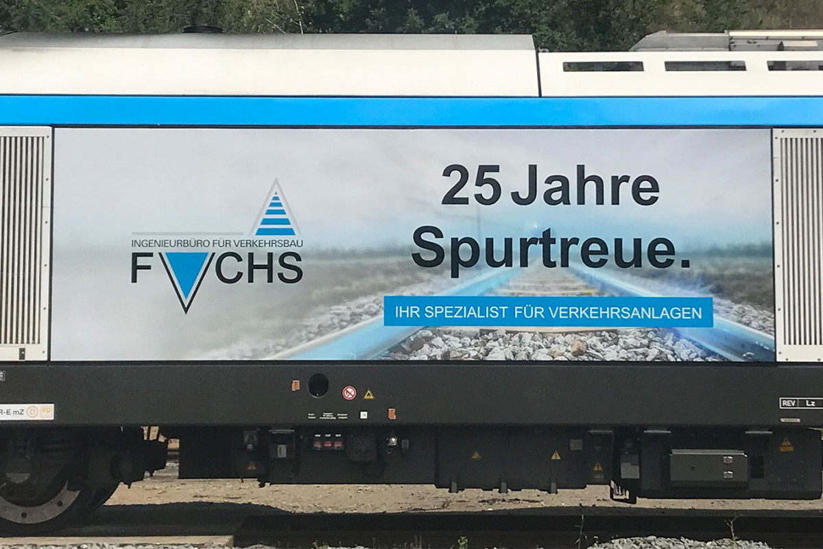 Anlässlich des 25-jährigen Firmenjubiläums von FUCHS Ingenieurbüro für Verkehrsbau GmbH erhielt ich die besondere Ehre, eine Diesellok der Baureihe 223 beidseitig zu gestalten – ein Projekt, das Kreativität, Konzeptstärke und Sinn für Wirkung auf ganzer Linie erforderte.