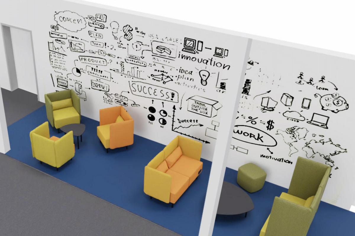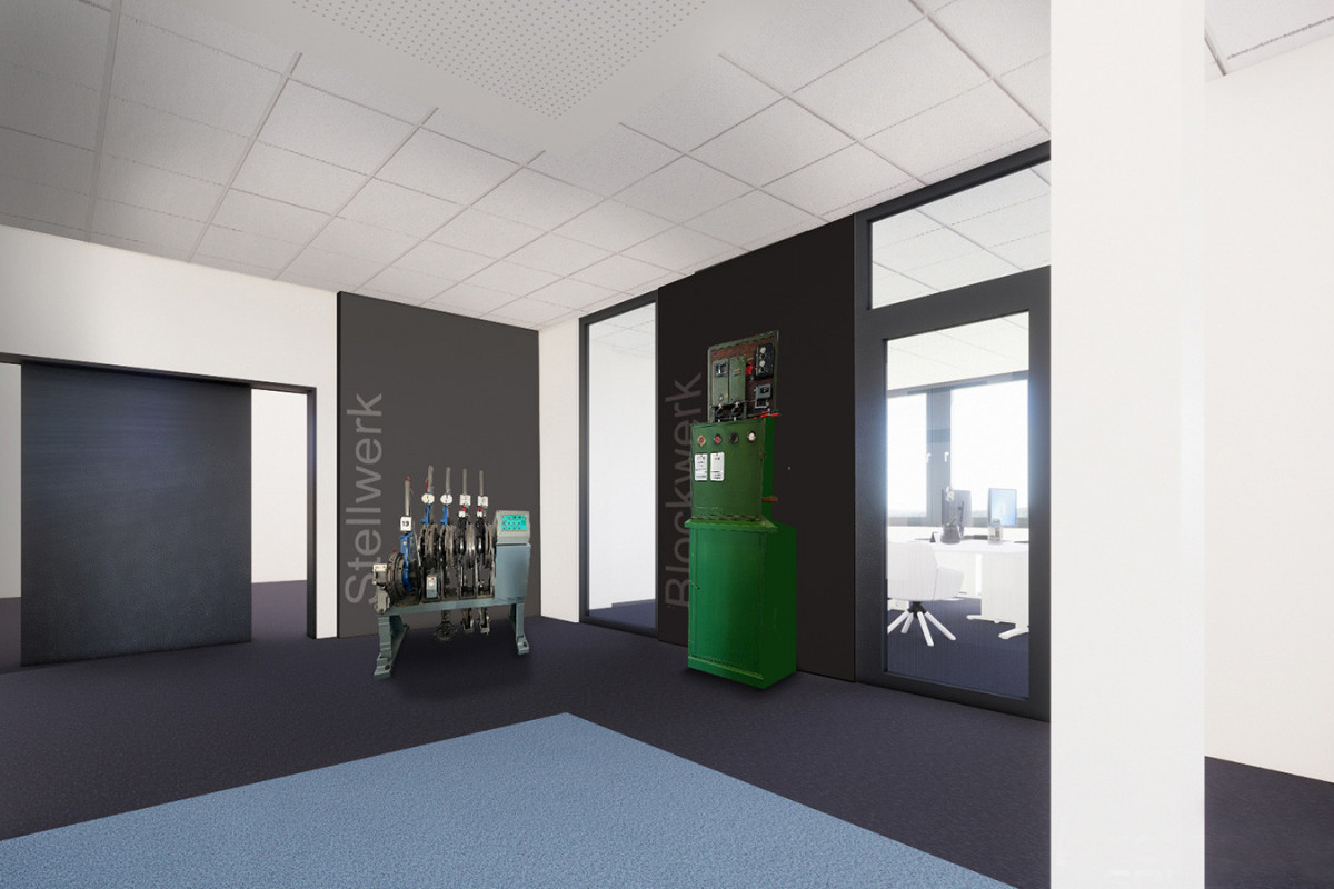 Die Besucher tauchen bereits im Eingangsbereich in das Fachgebiet des Unternehmens ein und werden von einer beeindruckenden, acht Meter hohen Schiene empfangen, die aus einem natürlichen Moosbett herausragt. Am Empfangstresen setzt eine fahrende Miniatureisenbahn einen spielerischen Kontrast zur industriellen Präzision. Die Geschichte des Unternehmens wird durch kreative Wandgestaltungen mit historischen Bildern, Schienenprofilen und Bauplänen erlebbar gemacht. Eine flexible Mitarbeiterwand rückt die Menschen hinter den Projekten in den Mittelpunkt und zeigt, dass Innovation von Persönlichkeiten lebt. Kommunikationszonen sind so gestaltet, dass sie den Austausch fördern – von einer alten DB-Sitzgruppe mit simulierten Bahnfenstern als Besprechungsraum bis hin zur zentralen Think Tank Area als Herzstück des Gebäudes. Typische Baustoffe, Farben und Motive aus der Welt von Fuchs verbinden die Räume zu einem stimmigen Gesamtkonzept, das visuell und haptisch die Identität des Unternehmens widerspiegelt.