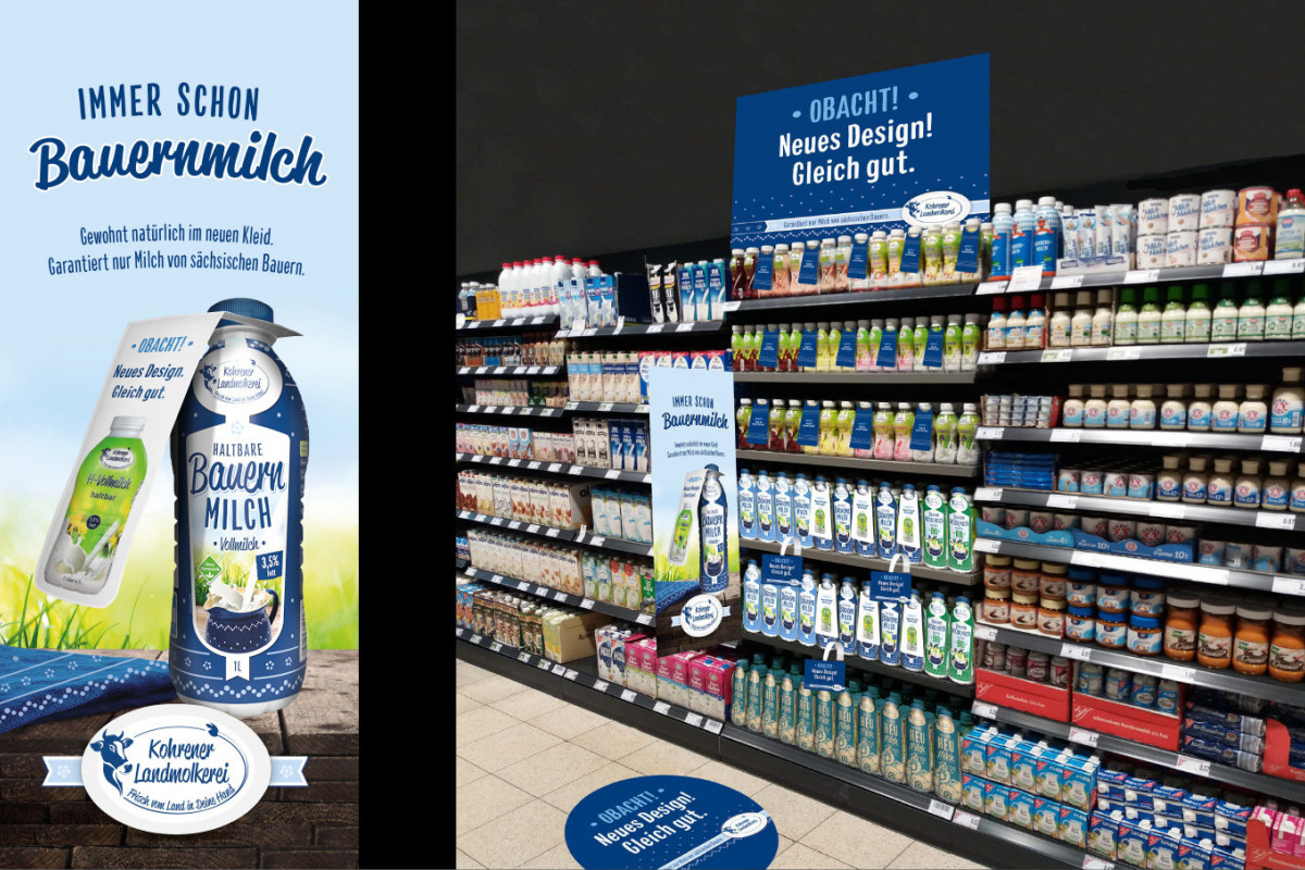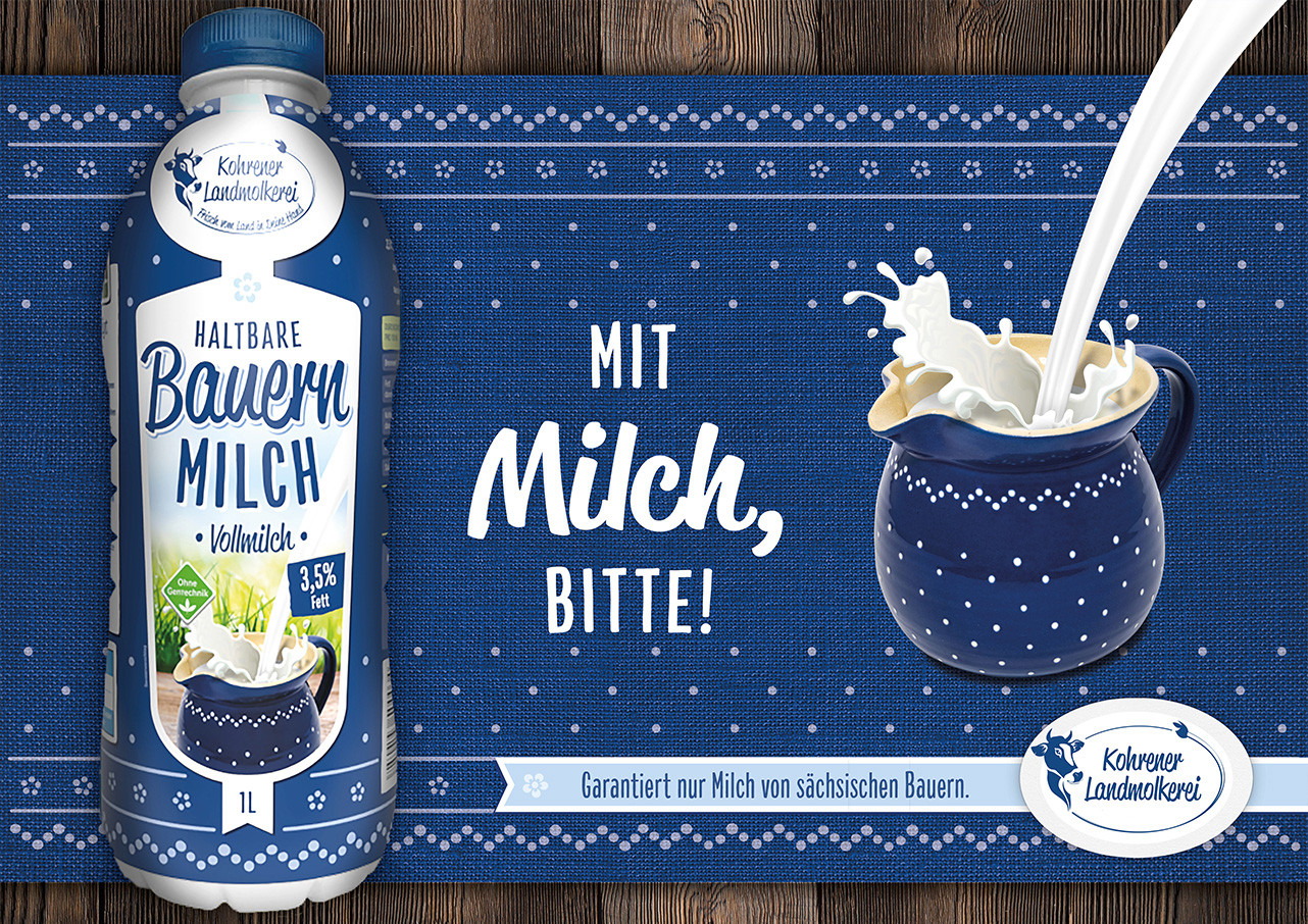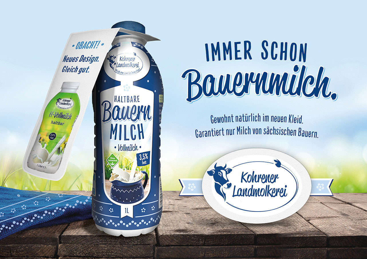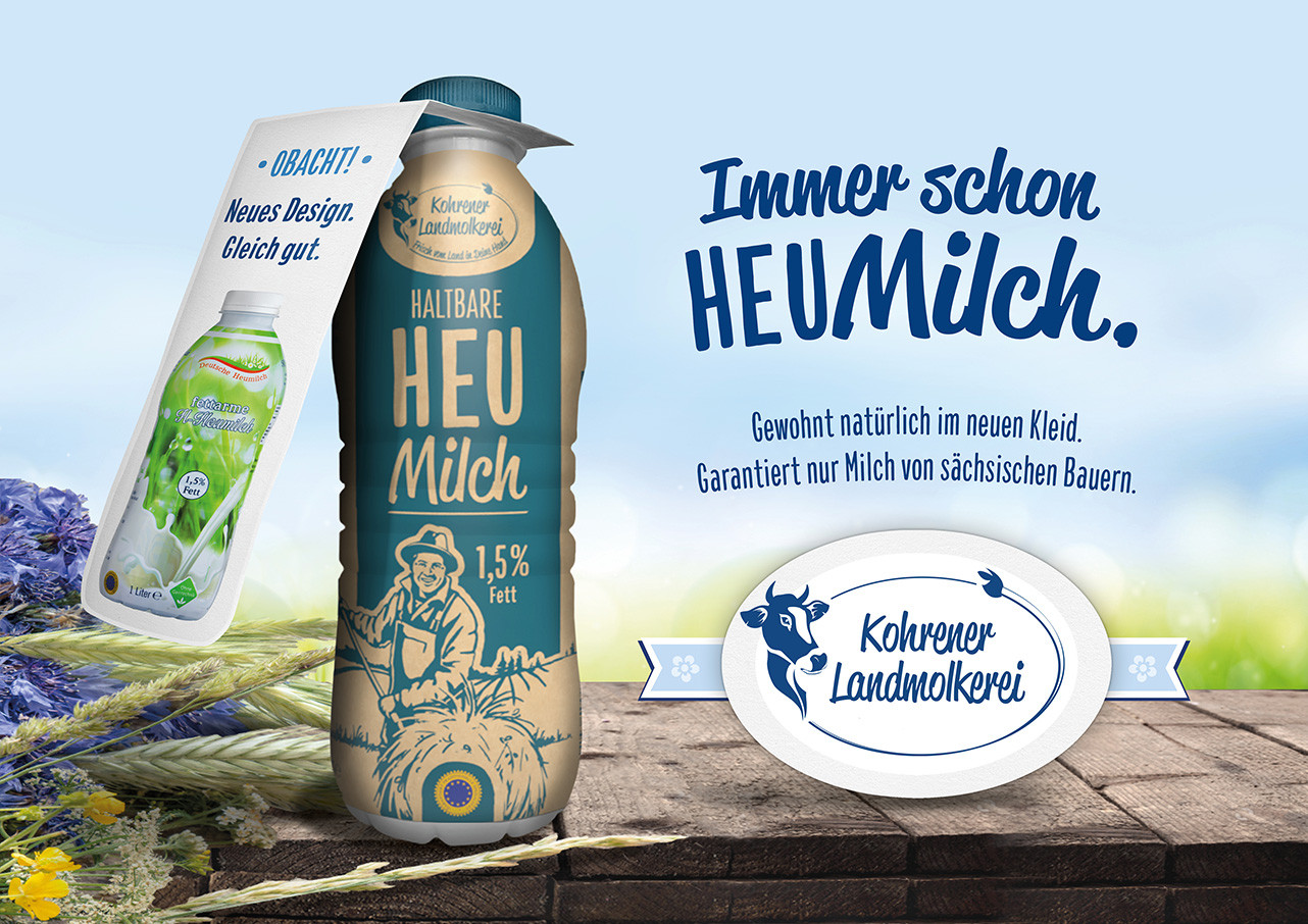Die Kohrener Landmolkerei mit ihren Linien Bauernmilch und Heumilch bekamen 2020 ein neues Packaging-Design – erstmals seit vielen Jahren. Die Einführung des neuen Packaging-Designs soll nicht nur eine optische Veränderung, sondern auch Teil einer durchdachten Kommunikationsstrategie sein. Für die Agentur Dschoy hatte ich die Gelegenheit, in enger Zusammenarbeit eine Kommunikationsstrategie und ein mehrstufiges Konzept zu entwickeln.