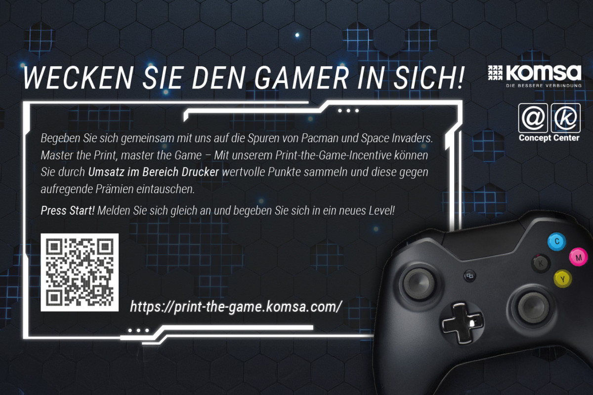 Um den Umsatz im Bereich Drucker zu steigern, entwickelte die KOMSA Systems GmbH ein Prämien-Incentive namens “Print-the-Game”, bei dem man sich gemeinsam auf die Spuren von Pacman und Space Invaders begeben konnte.