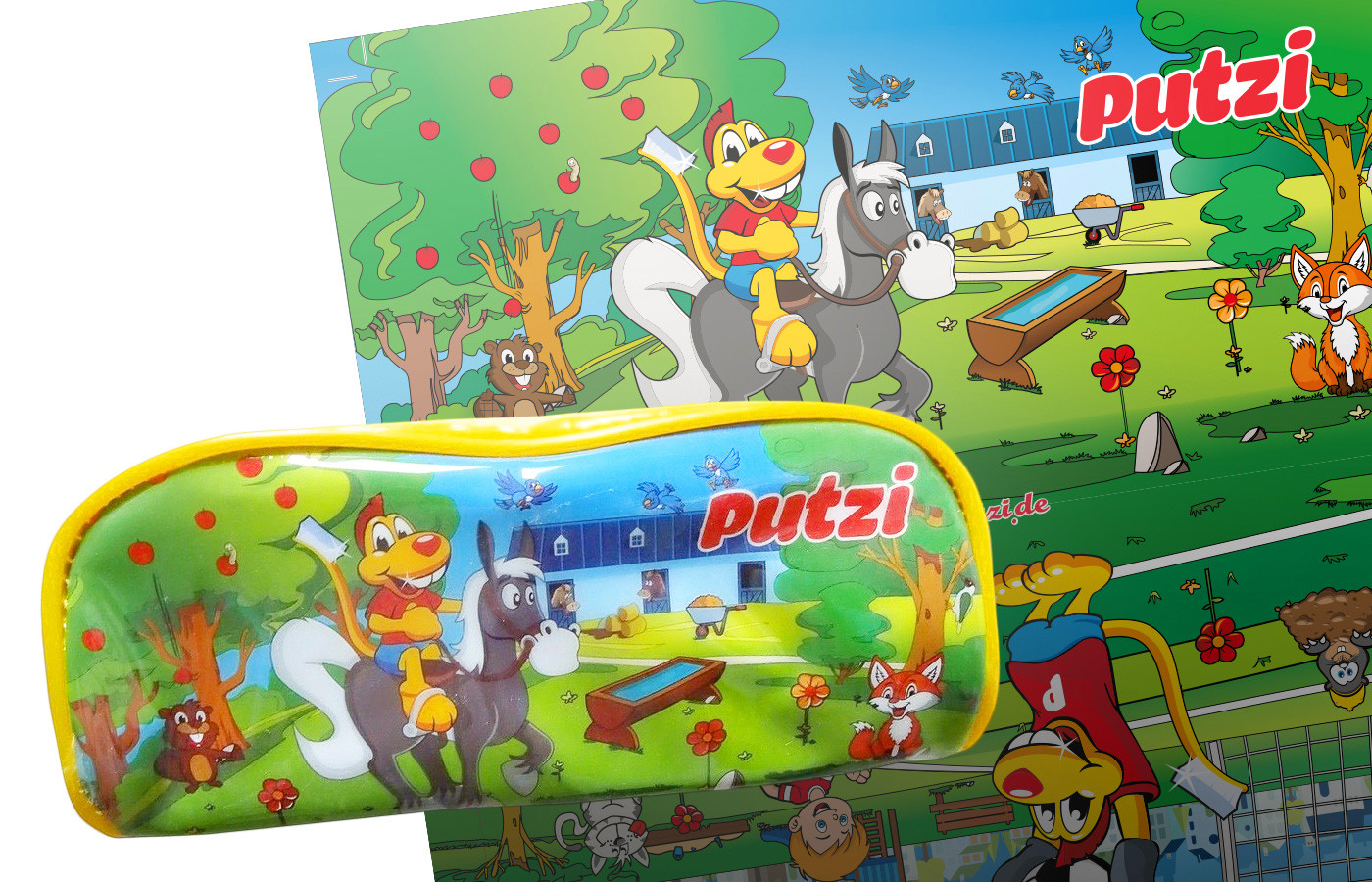 Neben dem Game-Design hat YB-Design weitere kreative Assets für die Marke gestaltet. Dazu gehören verschiedene Putzi-Charaktere für die Kommunikation, ein farbenfrohes Stiftemäppchen und diverse Printmaterialien, die das Spielerlebnis ergänzen und die Marke Putzi in den Alltag der Kinder integrieren.
